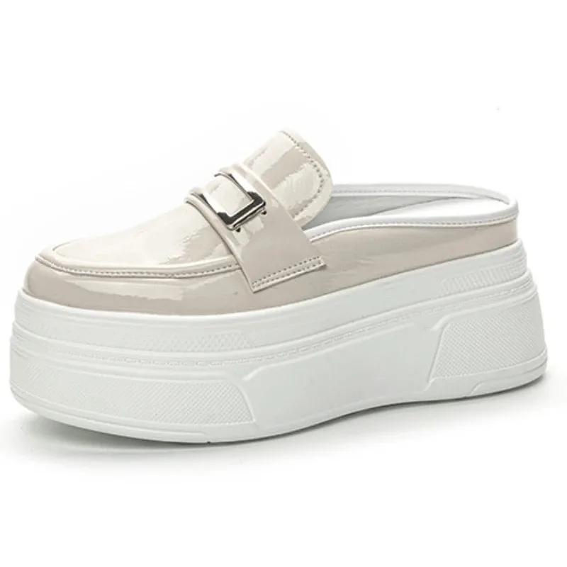 Мода 8,5 см Лакированная Синтетическая Кожа Платформа Клиновидный каблук Повседневные Туфли Массивный каблук Высокое качество Летние Весенние Шлепанцы Модные Сандалии Обувь