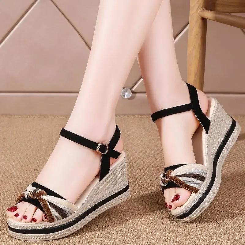 Модная женская обувь Ортопедическая Летняя 2025 Обувь в римском стиле на высоком каблуке Сандалии для женщин Кожаная танкетка Азиатский размер Комфорт