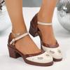 Модные элегантные женские туфли-лодочки Мэри Джейн на толстом каблуке, винтажные, разноцветные с принтом, туфли для платья, женские больших размеров, с ремешком на щиколотке, туфли на высоком каблуке для женщин