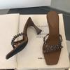 Модные летние тапочки, обувь для женщин, женские туфли на высоком каблуке, хрустальные шлепанцы с открытым носком, элегантные вечерние туфли для вечеринки, женские сандалии