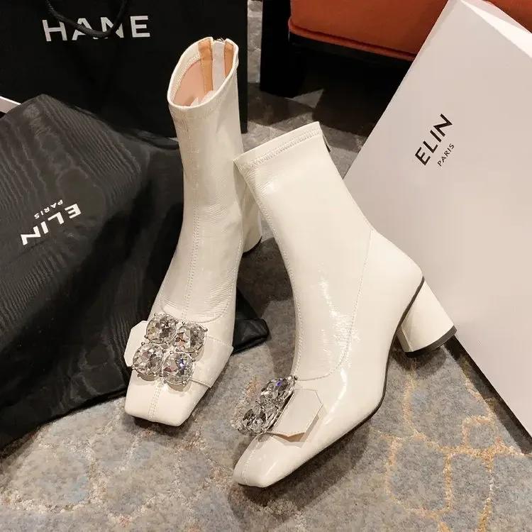 Мода Зимняя Мода Кристальные Челси Ботинки Женские Ботильоны Женские Высокие Каблуки Повседневная Обувь Сексуальные Туфли-Лодочки Готические Ботильоны Дизайнерская Обувь