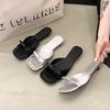 Fashion Bow Women Heeled Slippers Fashion Dress Shoes Summer Luxury Sandals Woman 2025 Beach Flip Flops Party Elegant Chaussure Femme