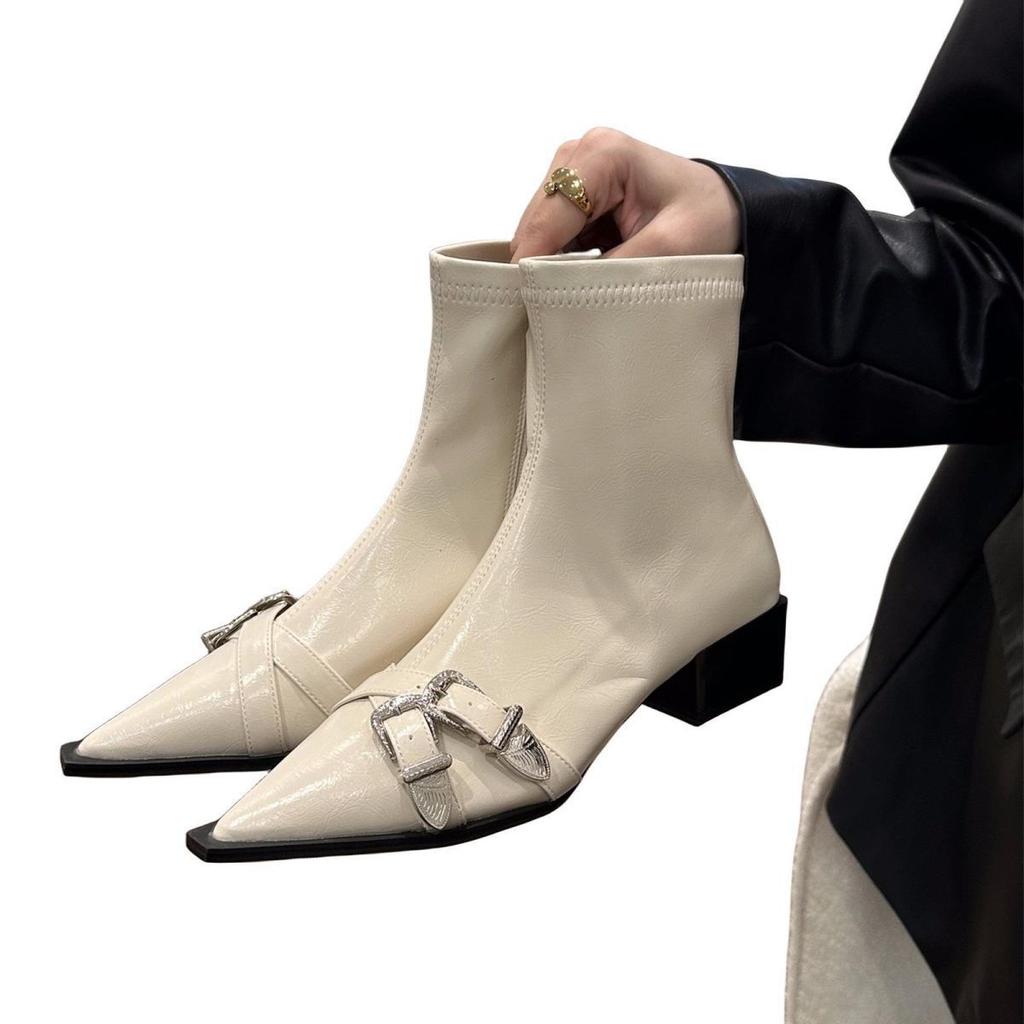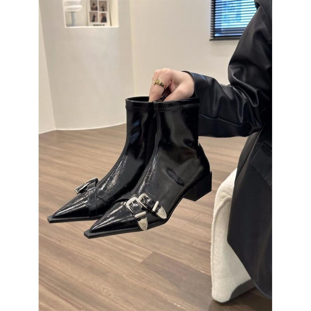 Темпераментные ботильоны на толстом каблуке с острым носком, женская обувь 2025, новые супер осенне-зимние одинарные ботинки, черные ботинки Мартин