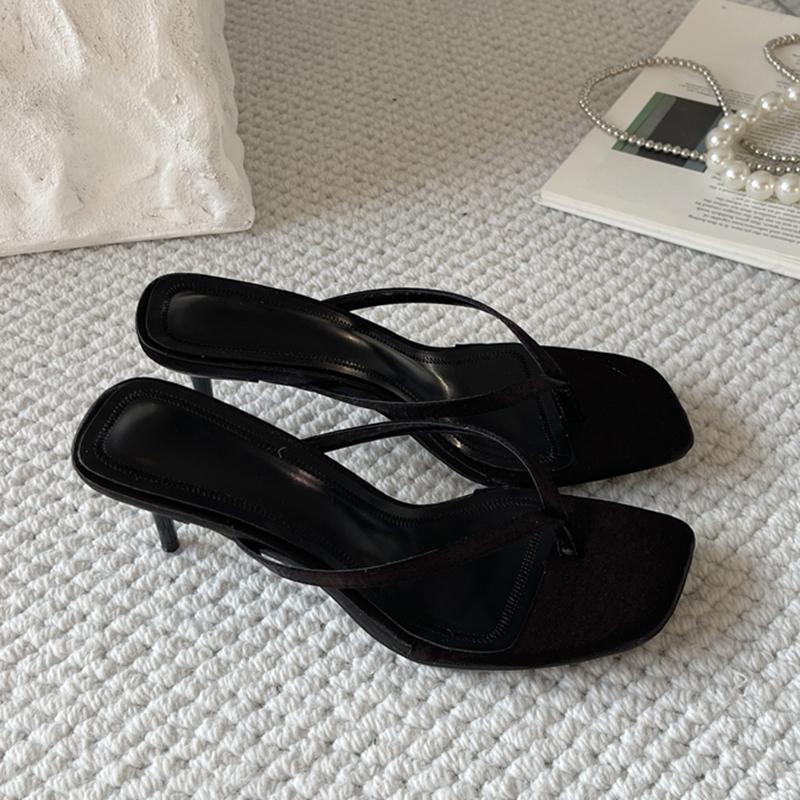 Fashion SUOJIALUN 2025 Summer New Women Slipper Fashion Narrow Band Women Slides Thin High Heel Outdoor Dress Gladiator Sandal Pumps Sho