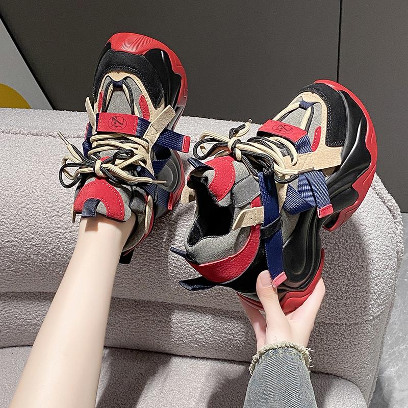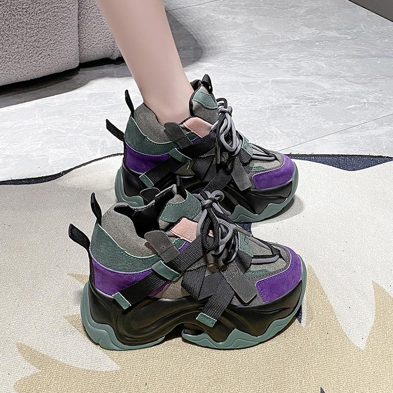 Мода 2025 Новые 9,5 см Женские Массивные Кроссовки Осень Высокая Платформа Папины Кроссовки Женские Повседневные Тренировочные Кроссовки Толстая Подошва Вулканизированная Обувь