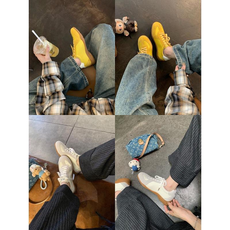 Cowhide grape mother with the same lace-up color matching round head versatile casual sports shoes women's genuine leather board shoes heig