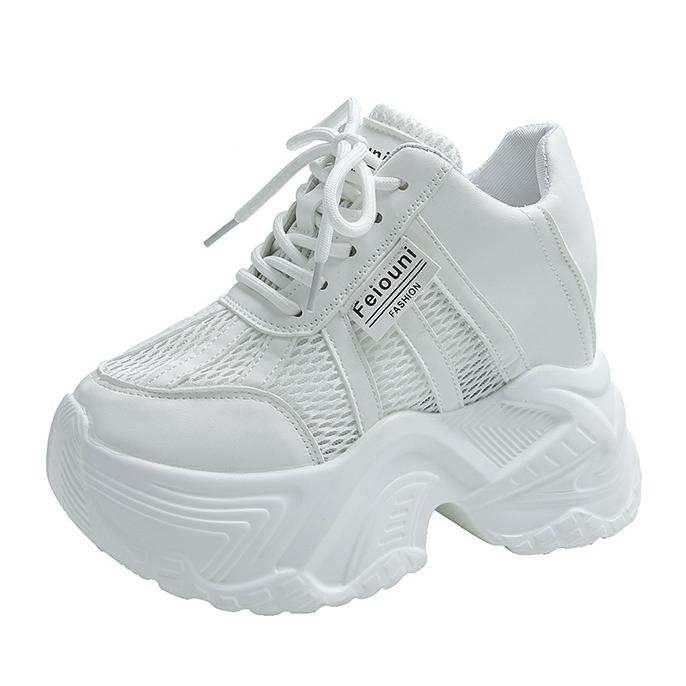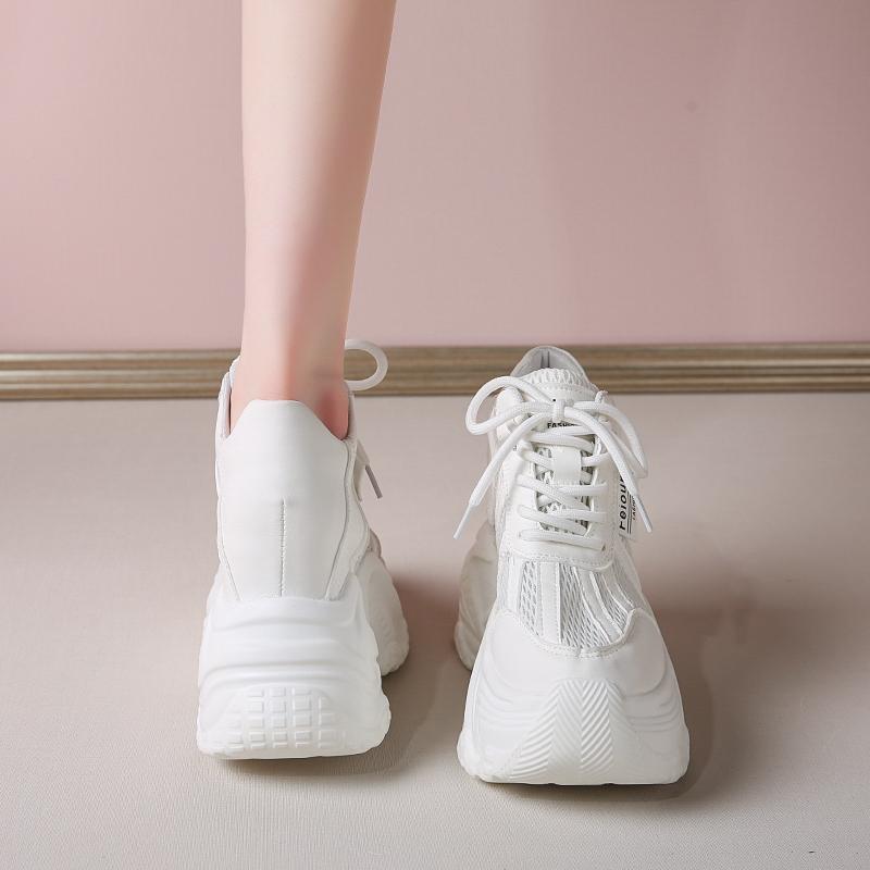 Модные женские кроссовки на платформе 7,5 см на шнуровке, осенние спортивные кроссовки в стиле «папины», высокие, массивные, повседневные, с толстой подошвой, сетчатые, белые