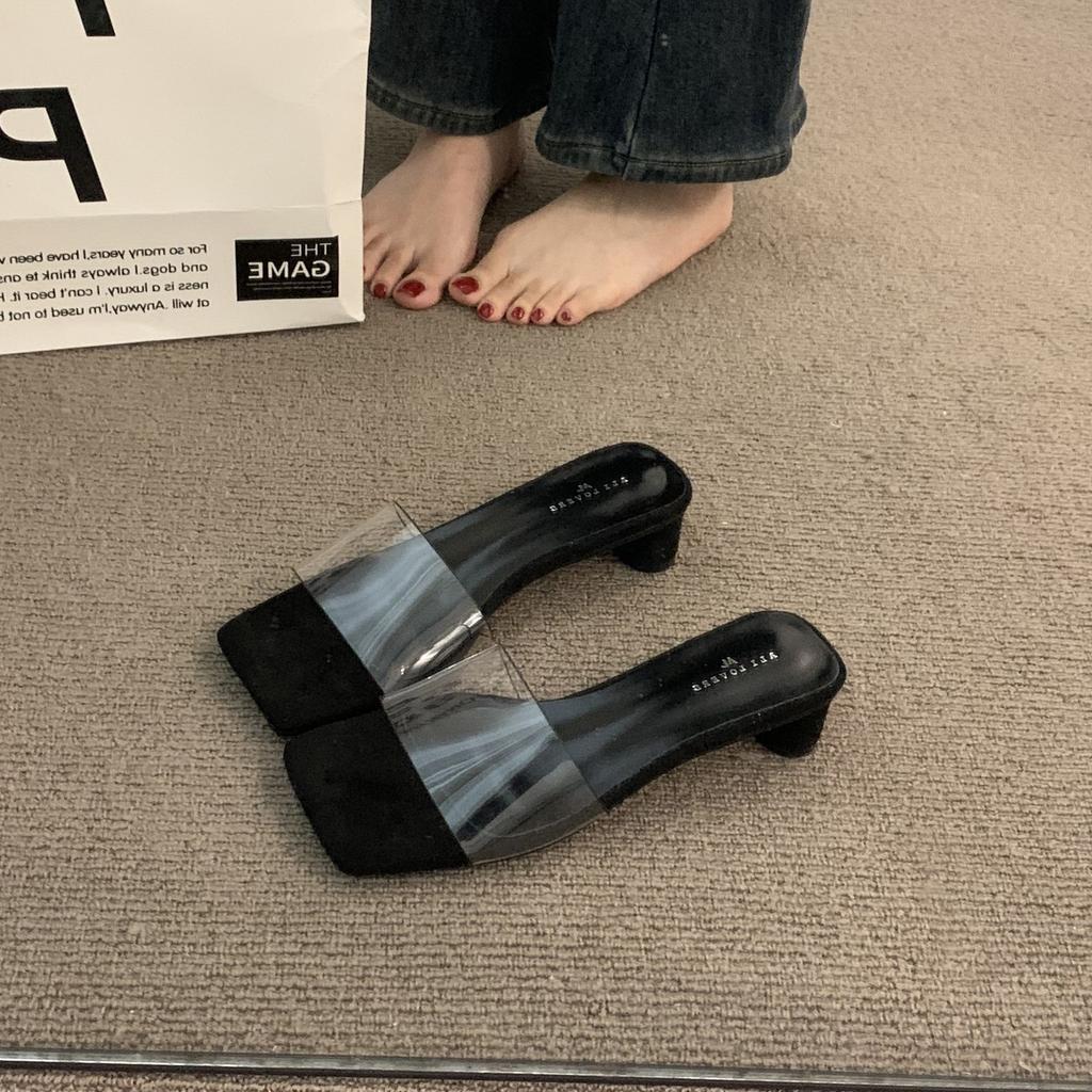 Французский бордовый прозрачный ремень толстый каблук темперамент шлепанцы на одном слове модные сандалии на среднем каблуке для путешествий изысканные сандалии
