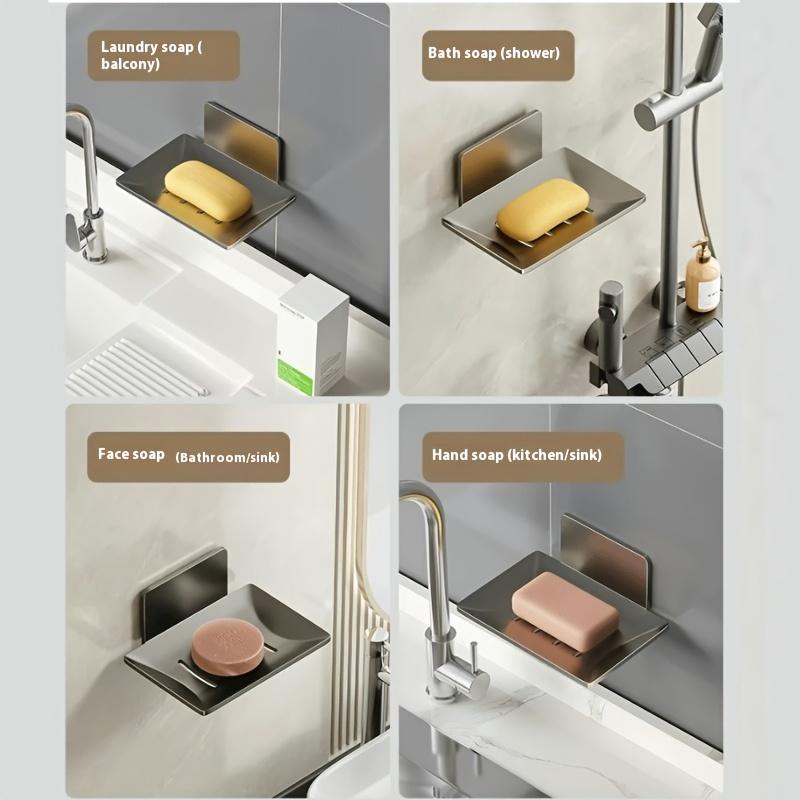2 шт. - Настенный держатель для мыла без сверления, Сливной держатель для мыла, Полка для хранения ароматических средств из углеродистой стали, Органайзер-бокс для мыла для ванной комнаты, Аксессуары для ванной комнаты