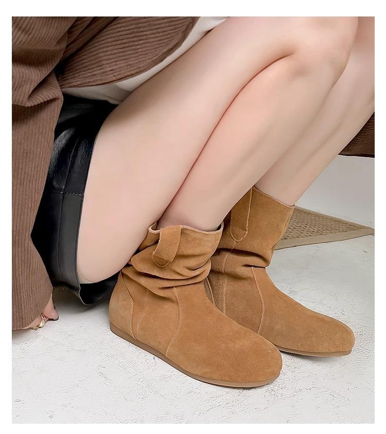 Интернет-знаменитость куча сапог 2025 новый круглый носок универсальная плоская подошва ковбойские сапоги из матовой кожи короткие сапоги женские весна и осень
