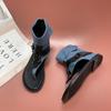 Винтажные римские сандалии женские на плоской подошве 2025 лето новые синие джинсовые с пряжкой на носке мягкая подошва универсальные сандалии женская обувь