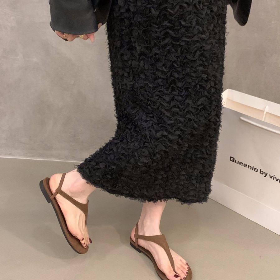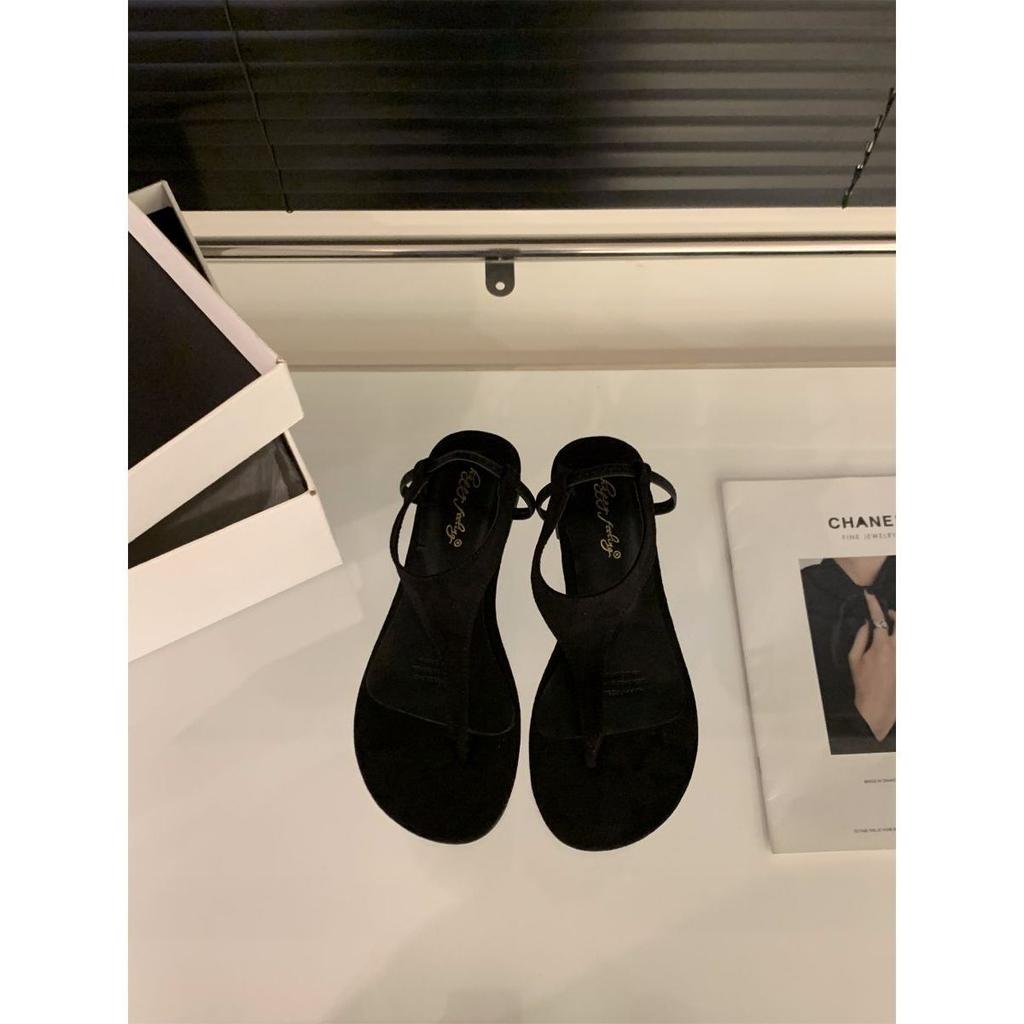 Ретро отпускные сандалии-щипки с плоской подошвой, туфельки феи, новинка лета 2025, черные универсальные пляжные римские сандалии