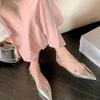 Sexy bag head silver sandals women's 2025 summer French cross-strap empty flat heel single shoes light mouth pointed flat shoes