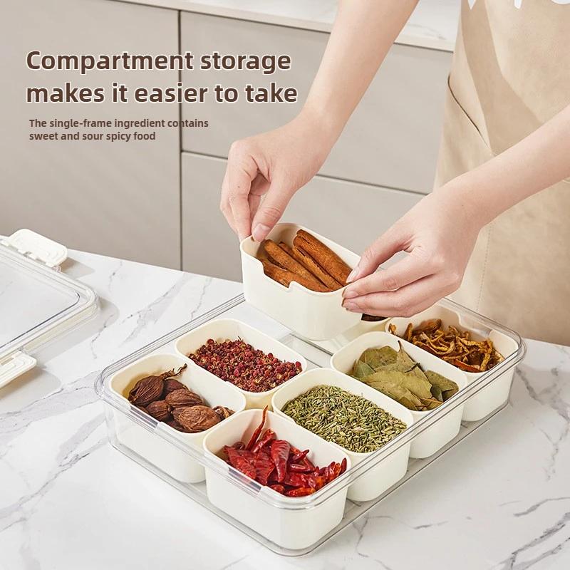 Пластиковый контейнер для специй пищевого класса, герметичный, разделенный, с крышкой, для трав, бадьяна, сухих продуктов, чая, орехов, конфет, органайзер для кладовой