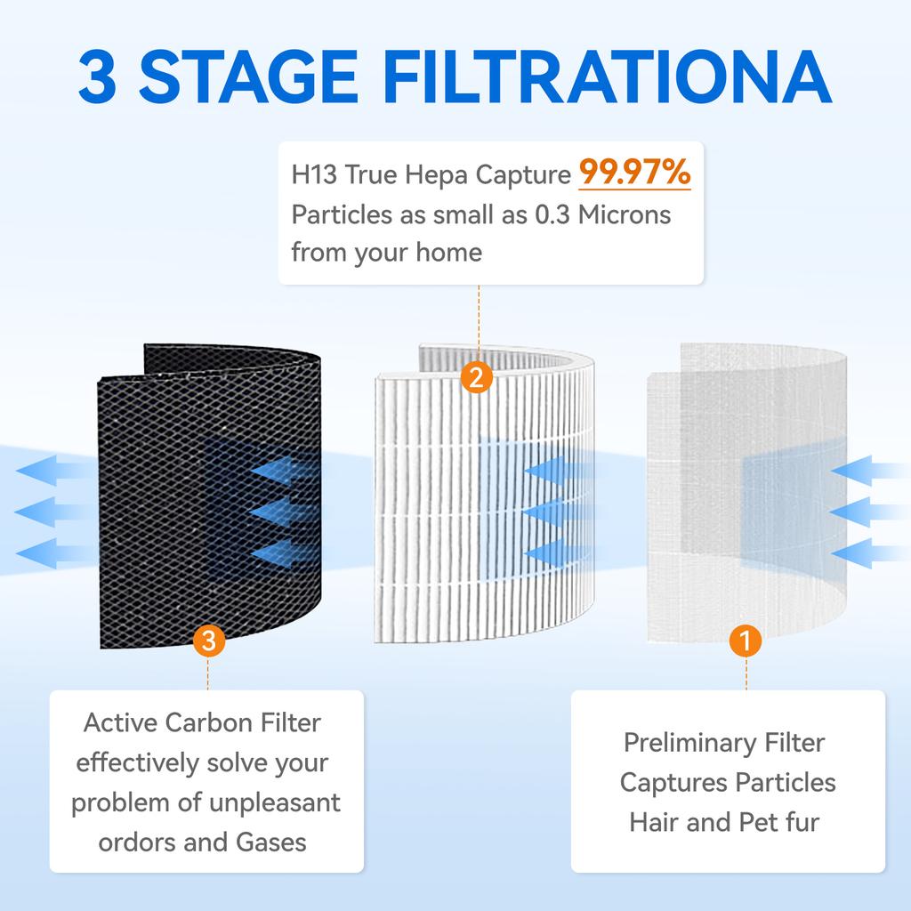 2 шт. Подходят для 511 Сменный фильтр True HEPA Совместим с очистителем воздуха Blueair Blue Pure 511, фильтр HEPA 2-в-1