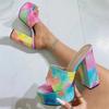Eilyken Камуфляжные Массивные Платформы Супер Высокие Каблуки Женские Шлепанцы Открытый Носок Банкетные Слайды Летняя Обувь