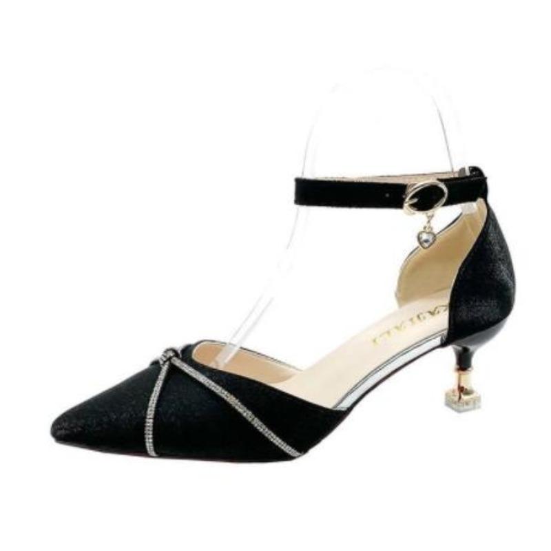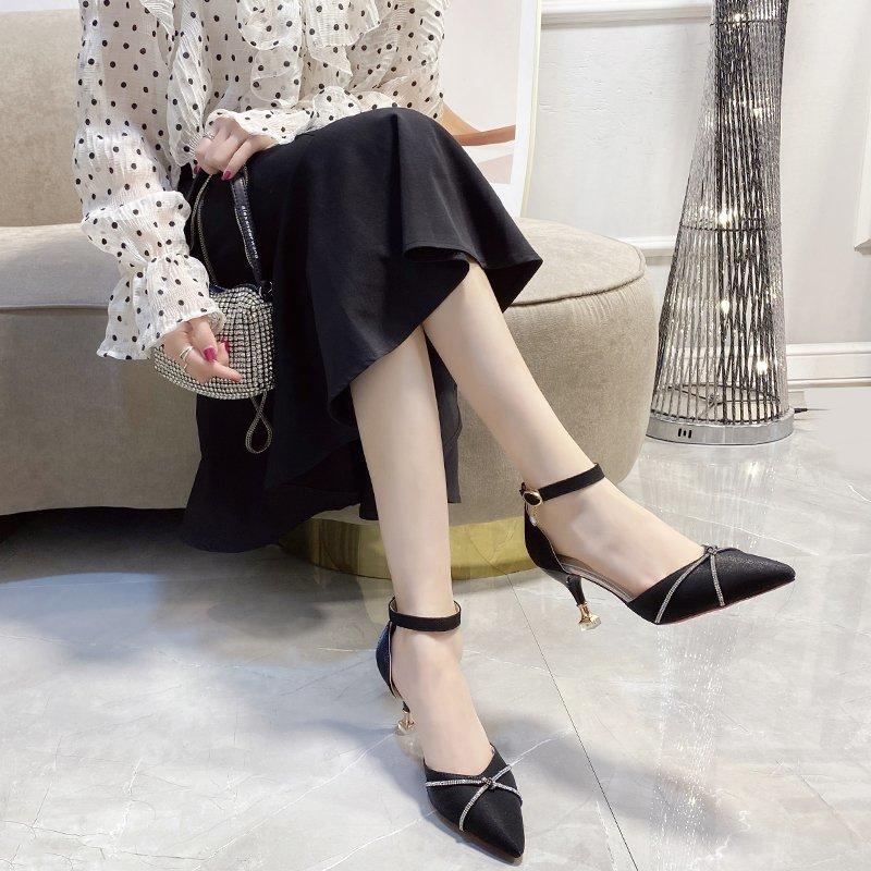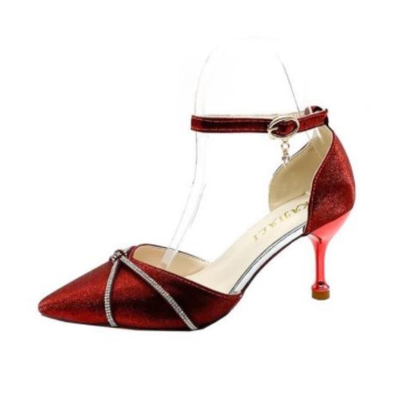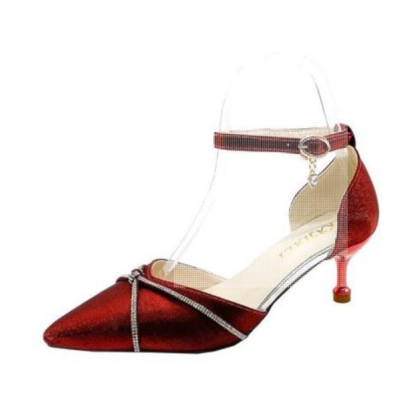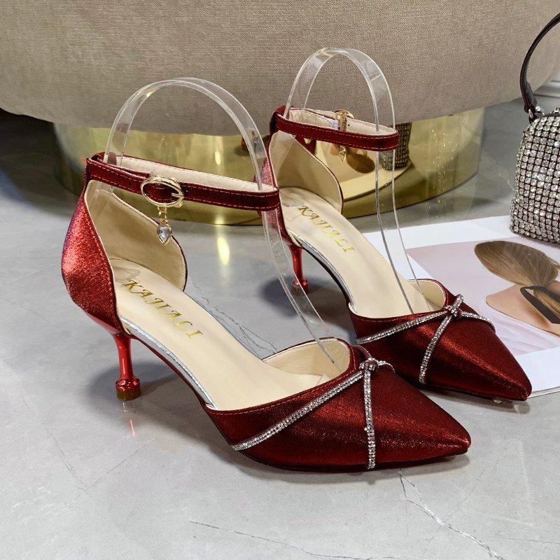Красные атласные свадебные туфли, новые весенние женские туфли на шпильке с заостренной головкой и пряжкой в виде одного слова, полые женские туфли на шпильке