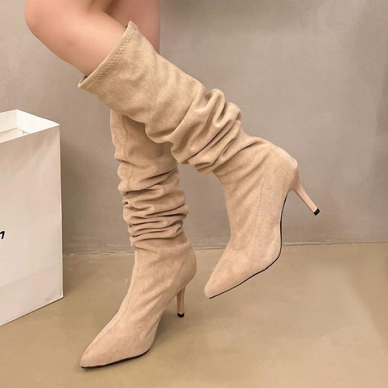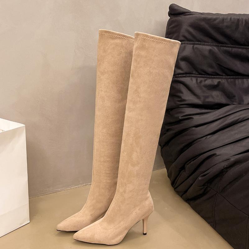 Осень 2025 Женские сапоги до колена Челси Дизайнерская обувь Сексуальные Элегантные Мокасины Винтажный Тренд Большой размер Высокие каблуки
