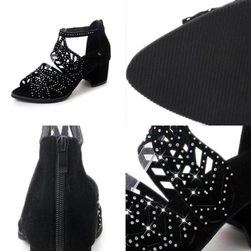 Новые женские сандалии 2025 года с вырезами из искусственной кожи, женские туфли-лодочки со стразами на блочном каблуке, сандалии на молнии, женские туфли на каблуке