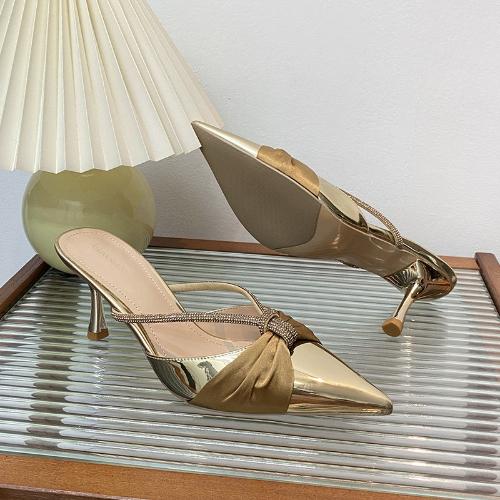 Женские босоножки на блочном каблуке 2025 лето атласные с острым носком со стразами на высоком каблуке модные мюли без застежки