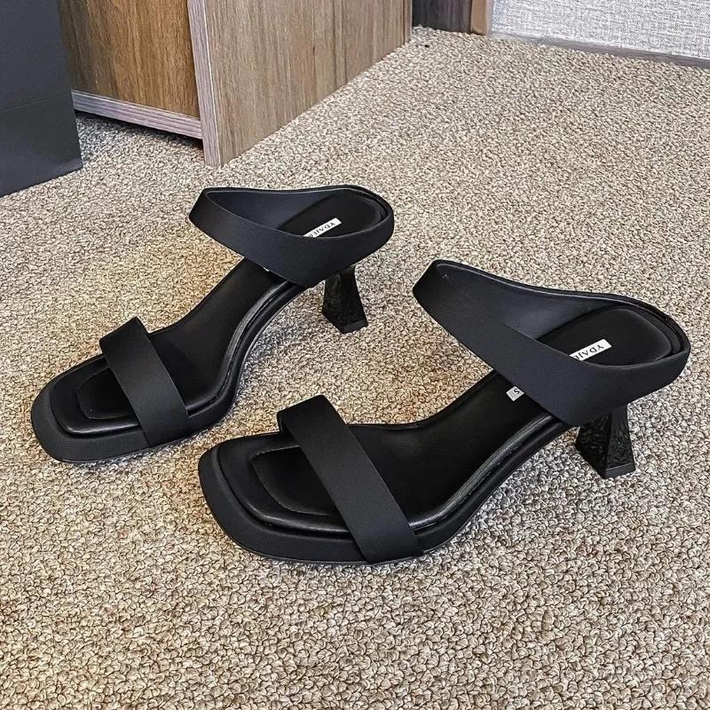 Леопардовые женские туфли на высоком каблуке, шлепанцы, сексуальная обувь, туфли-лодочки с квадратным носком, массивные сандалии, новинка 2025, летние женские туфли для вечеринок, сандалии для платья