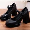 Осень Новые Туфли на Толстом Каблуке Женские С Квадратным Носком С Мелким Вырезом С Пряжкой На Одном Слове Толстая Подошва Низкие Туфли