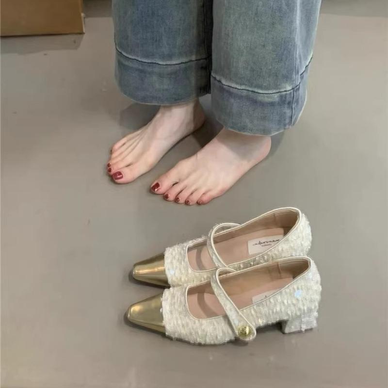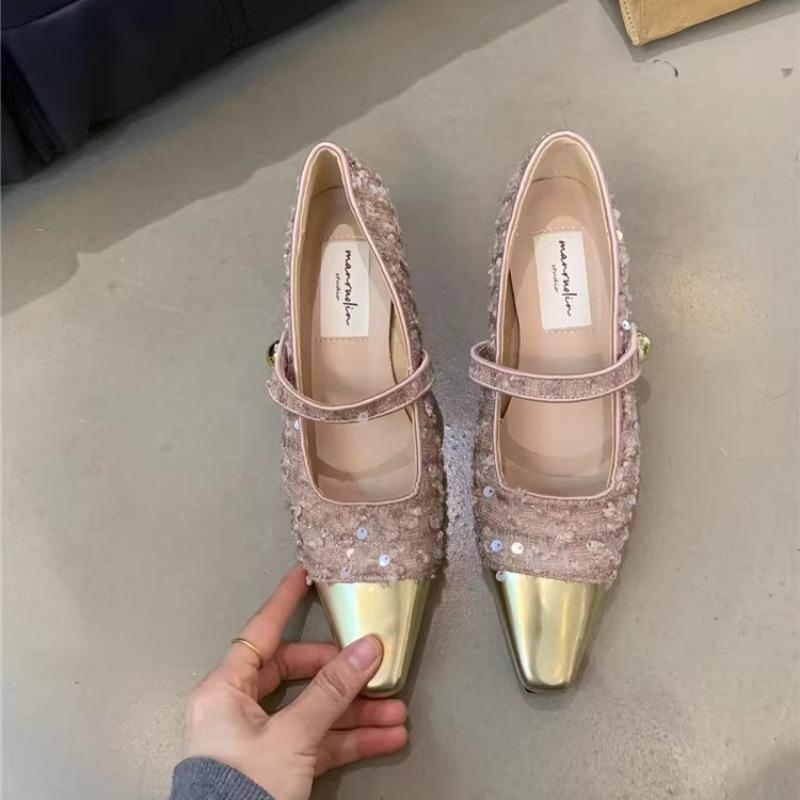 Туфли с квадратным носком и пайетками Женские 2025 Новые Летние Мелкие Женские Сандалии Элегантные Массивные Каблуки Банкетные Женские Туфли Q69