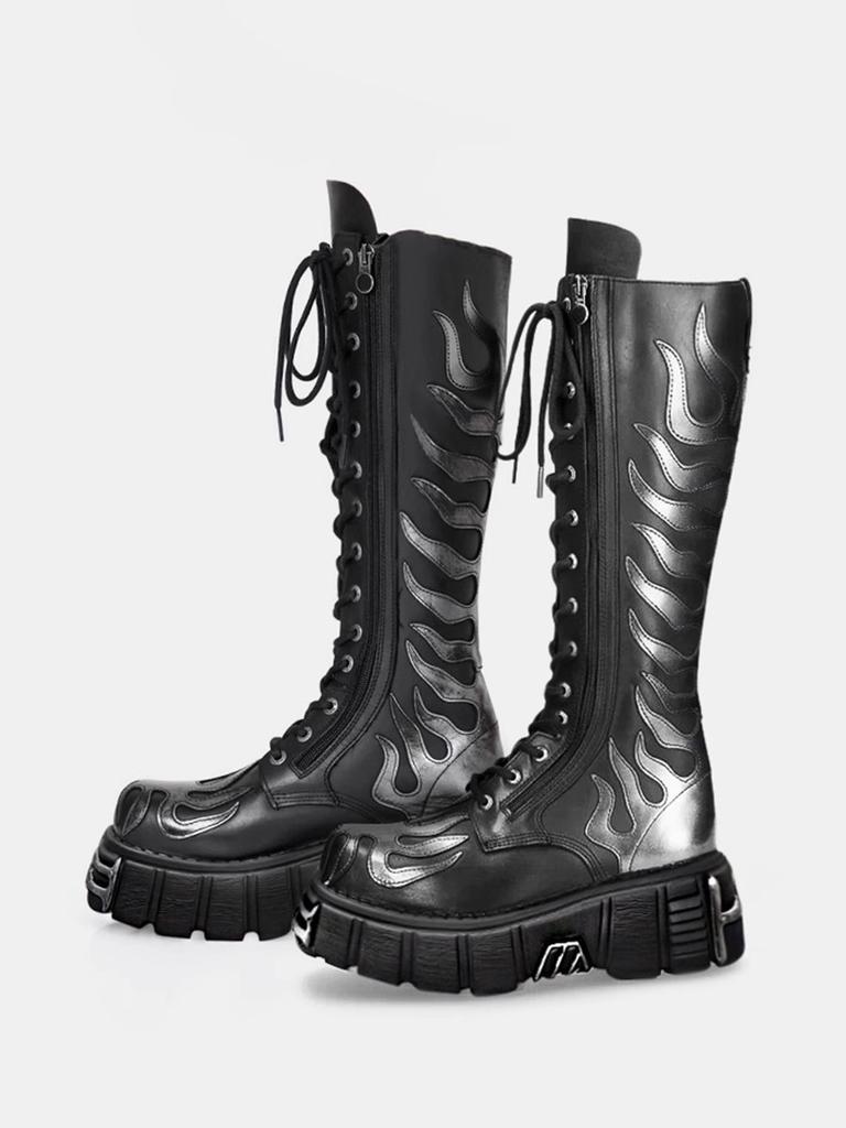 Зимние Новые Женские Длинные Сапоги на Платформе на Шнуровке Элегантные Женские Сапоги до Колена Обувь на Толстой Подошве Мотоциклетные Сапоги