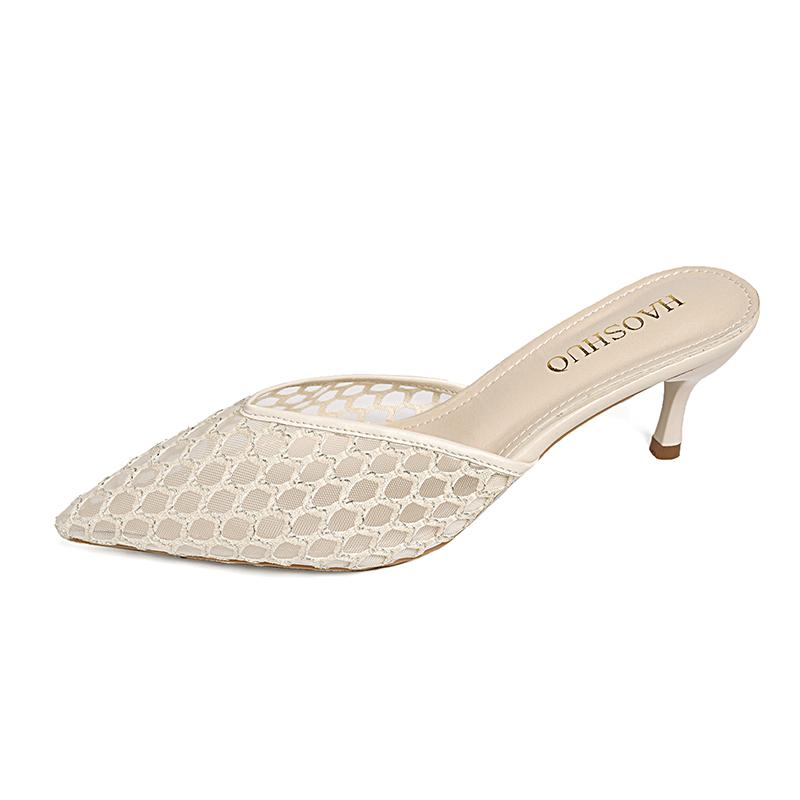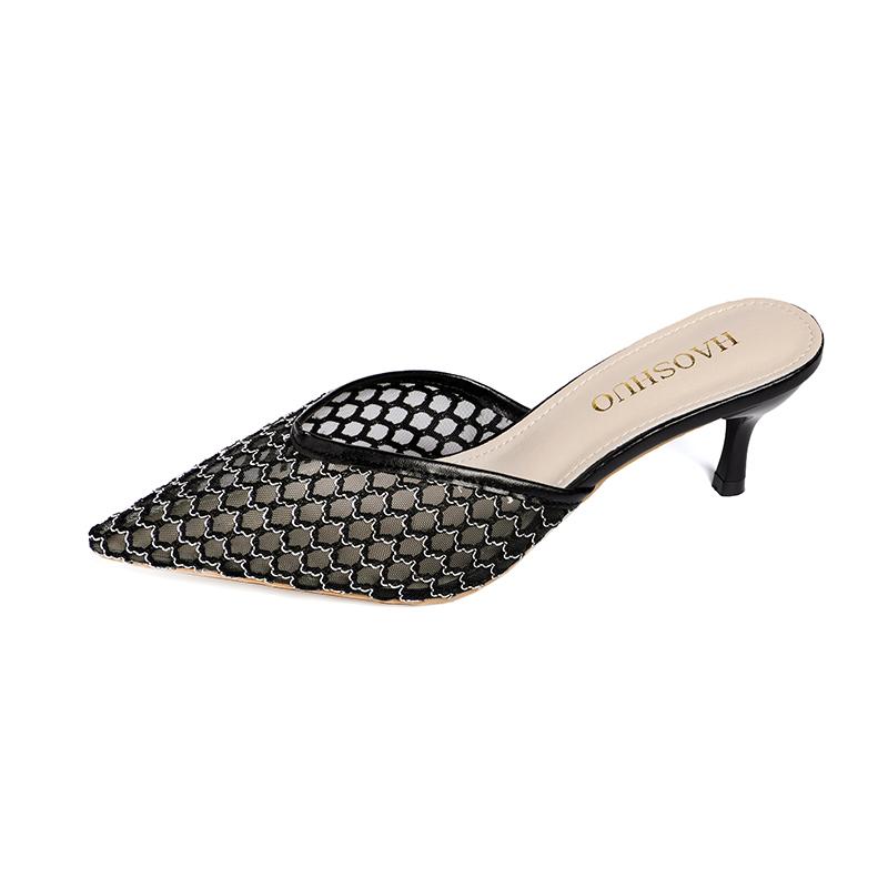Туфли Баотоу Женские Остроносые Сетчатые Дышащие Закрывающие Стопу Противоскользящие Износостойкие На высоком каблуке