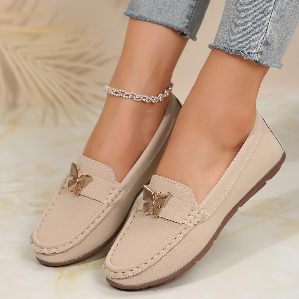 2025 Весна и Осень Однотонные Женские Лоферы на Плоской Подошве Новые Модные С Круглым Носком на Низком Каблуке Повседневные Большого Размера Женские Туфли на Плоской Подошве для Женщин