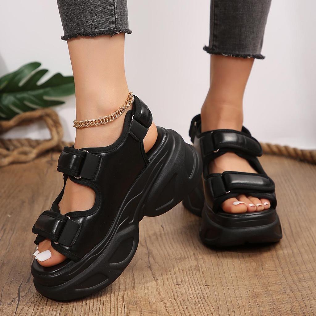 Сандалии на платформе в европейском и американском стиле на липучках – Большие размеры, Модный дизайн на толстой подошве