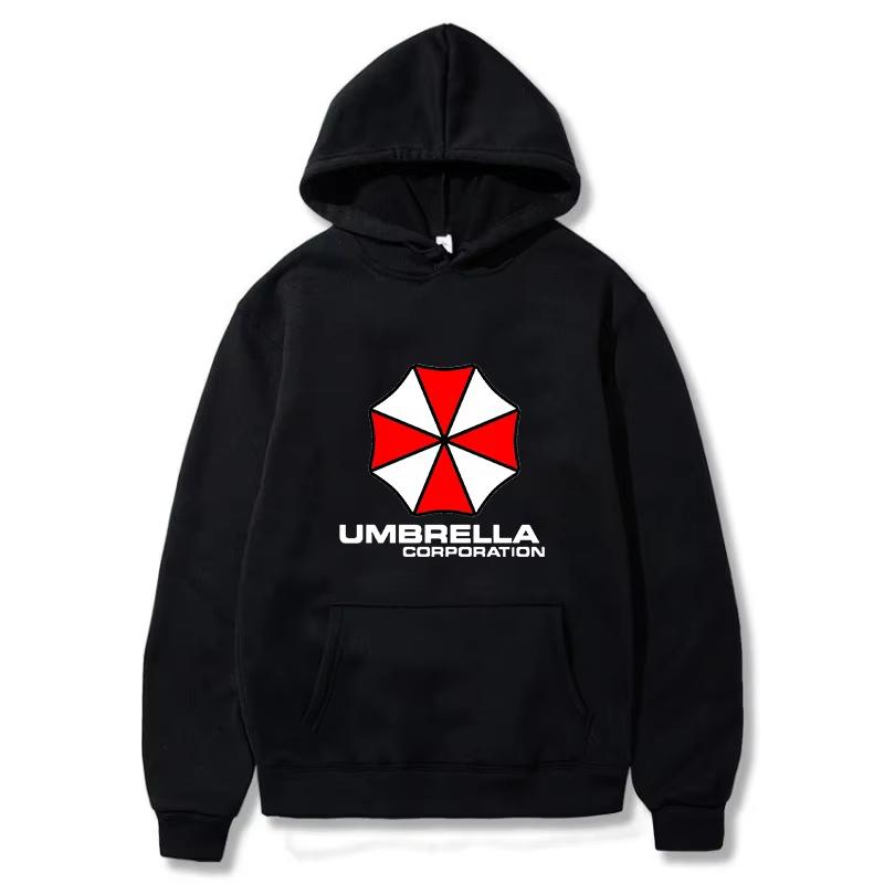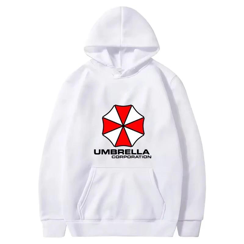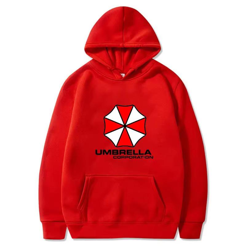 Red and white protective umbrella paired with men's and women's hooded casual hoodie 2025 Spring and Autumn Fashion New Style