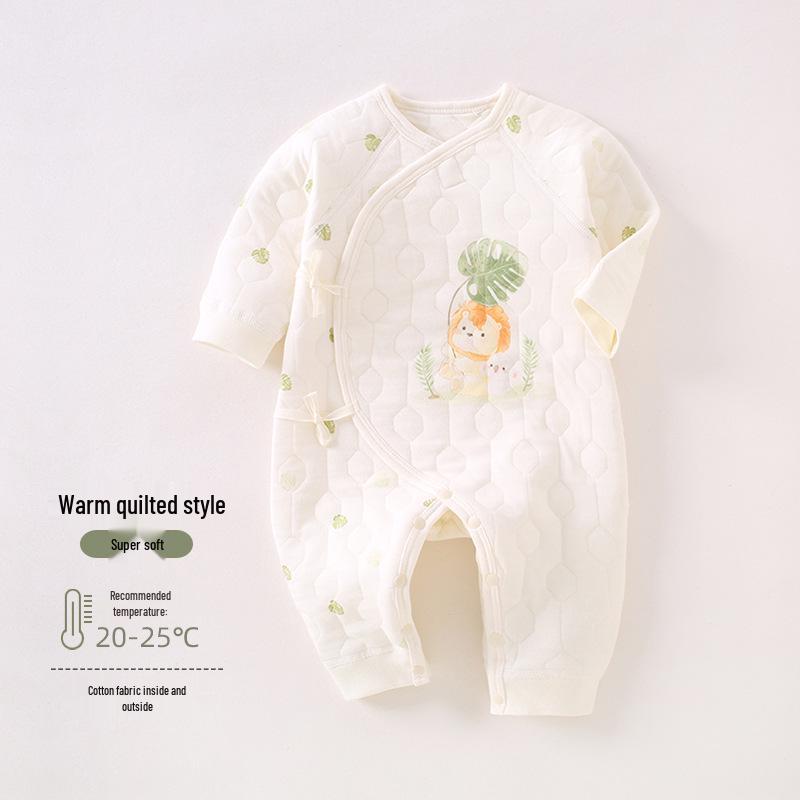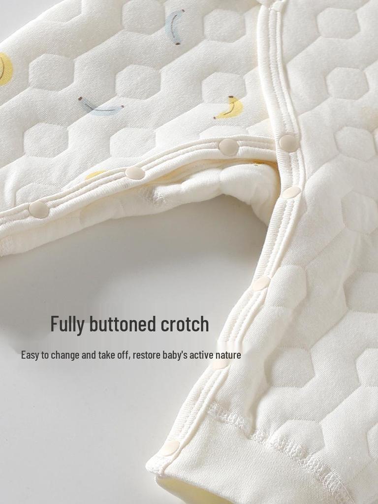 Детский ромпер с бабочкой: Уютный трехслойный хлопковый слип для новорожденных - Идеально для осени и зимы