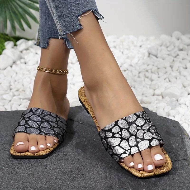Модная женская обувь 2025 Горячая распродажа Туфли-шлепанцы с открытым носком Женские шлепанцы Модное сочетание цветов Повседневные шлепанцы Женские Летние Большого размера Шлепанцы на плоской подошве