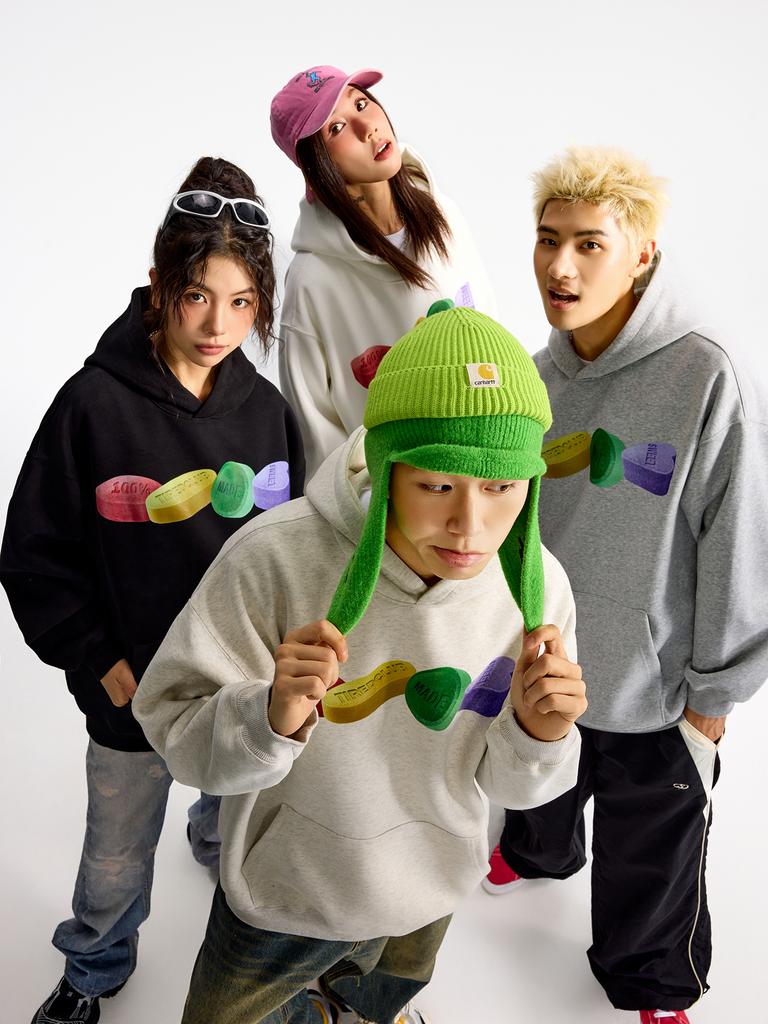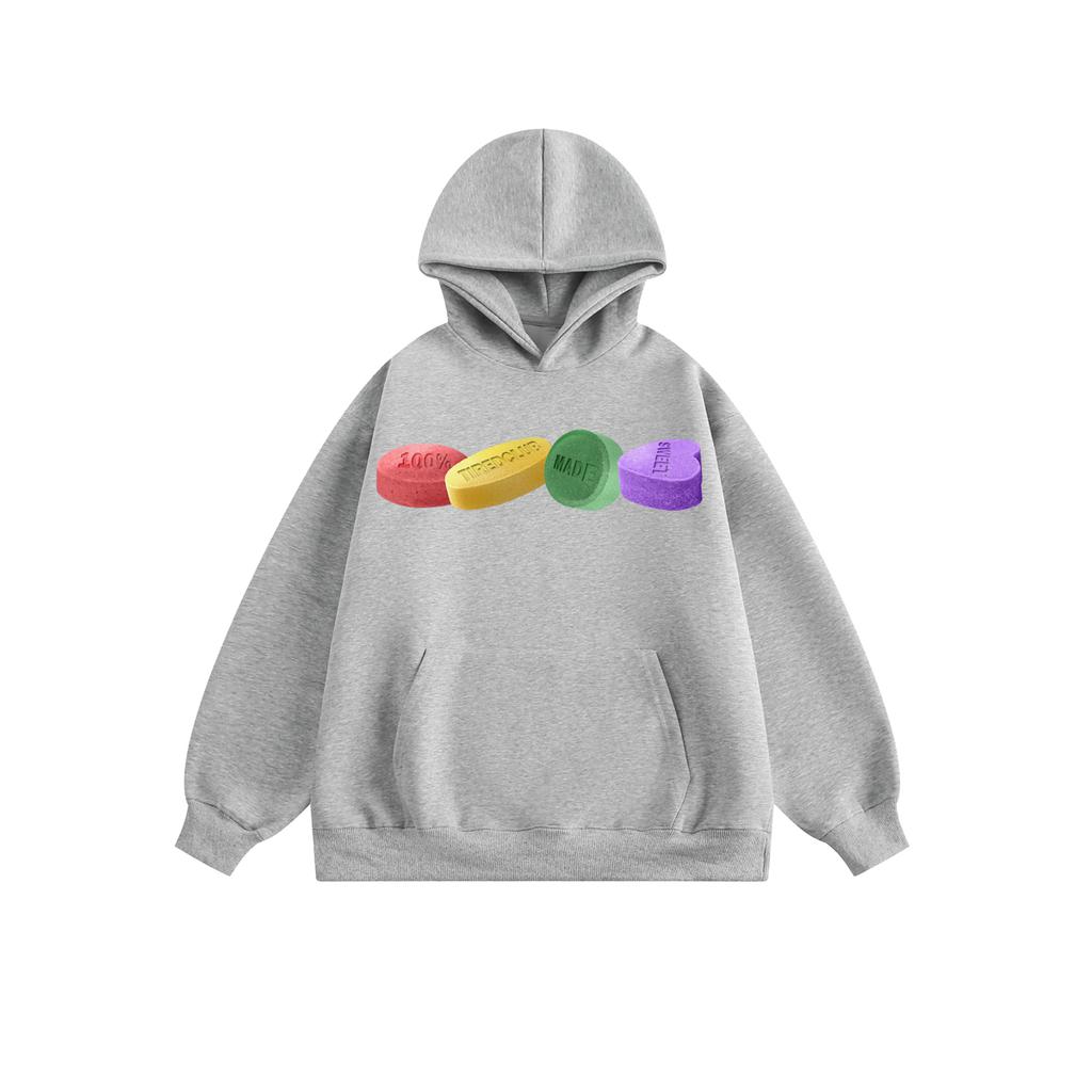 Яркая толстовка с капюшоном в американском стиле с принтом в виде таблеток, новая модель для весны и осени, в школьном стиле, из чистого хлопка. Модный трендовый вариант.