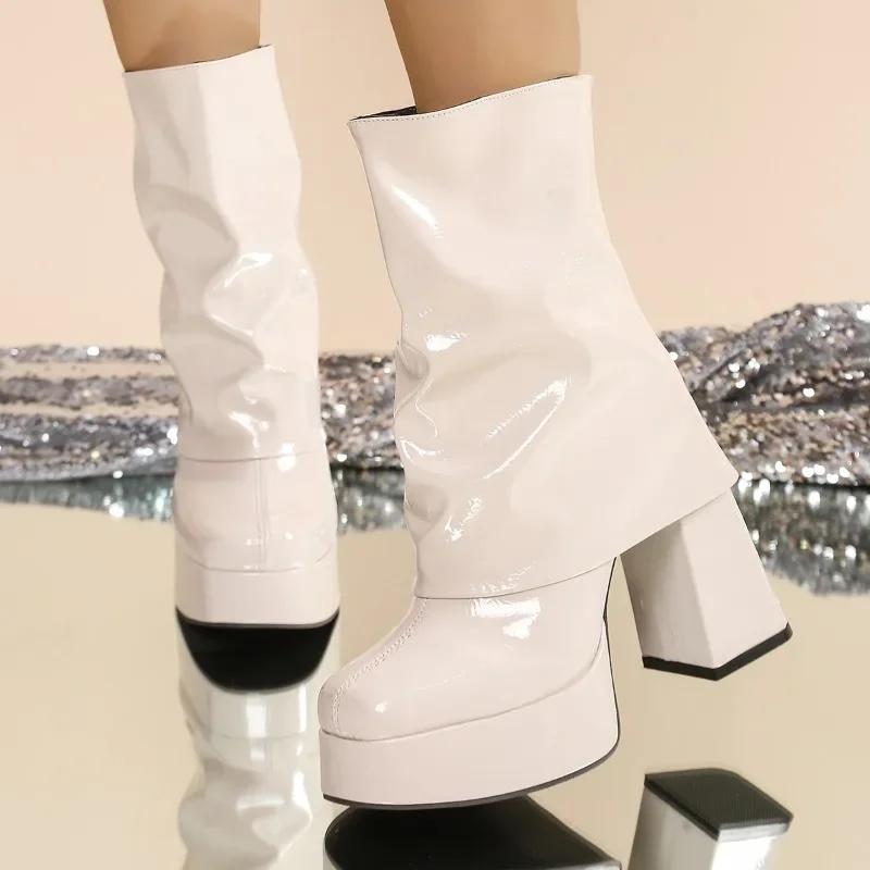 Модная платформа платформа женская осень зима 2025 новая квадратный носок модная женская ботильоны на блочном каблуке