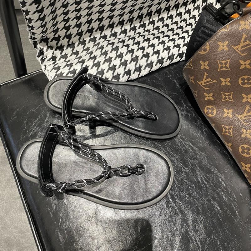 Модные пляжные римские сандалии пеньковая веревка толстая подошва липучка шлепанцы новый стиль с перемычкой для пальца ленивый универсальный