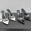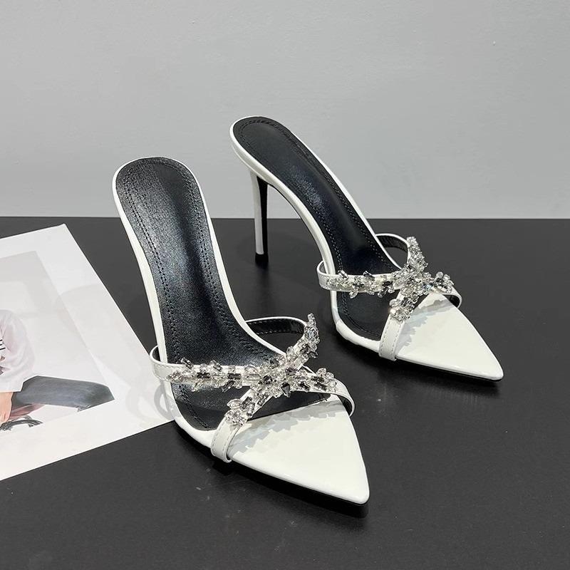 Модные сандалии со стразами женские летние новые с острым носком открытым носком из лакированной кожи с перекрестными ремешками на одном ремешке на шпильке на высоком каблуке полушлепанцы