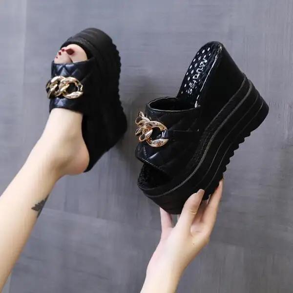 Модные шлепанцы Повседневные шлепанцы на танкетке и платформе Женские туфли на высоком каблуке Роскошные Мягкие 2024 Летняя мода ПУ ткань Повседневные