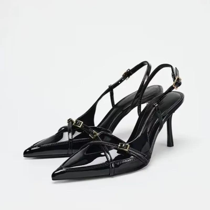 Модные французские нежные вечерние туфли-лодочки с перекрестным ремешком на подъеме, с острым носком и открытой пяткой, женские летние туфли на высоком каблуке
