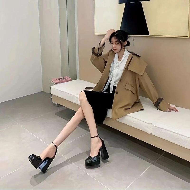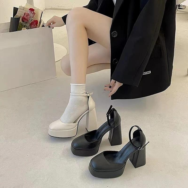 Модная обувь Мэри Джейн Женская 2025 Новая Весна Осень Толстый каблук Высокий каблук Водонепроницаемая Платформа Ажурная Черная Бежевая Женская обувь Туфли