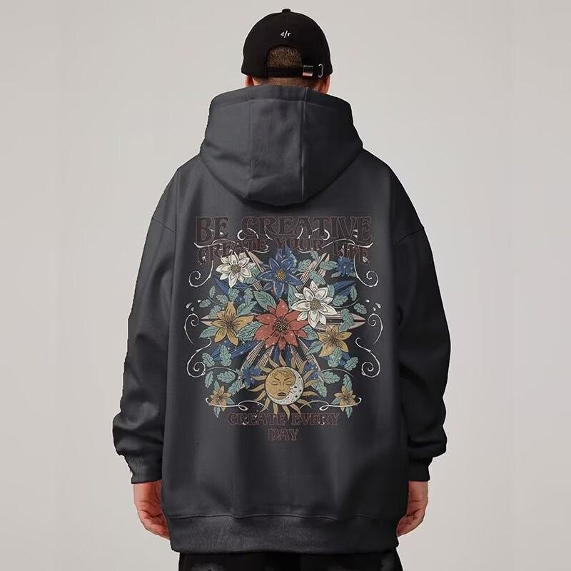 M-8XL American Retro Style Oil Painting Style Men's Warm Top Loose Slimming Hoodie