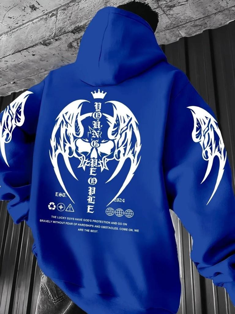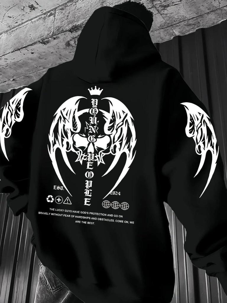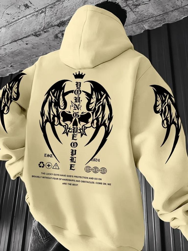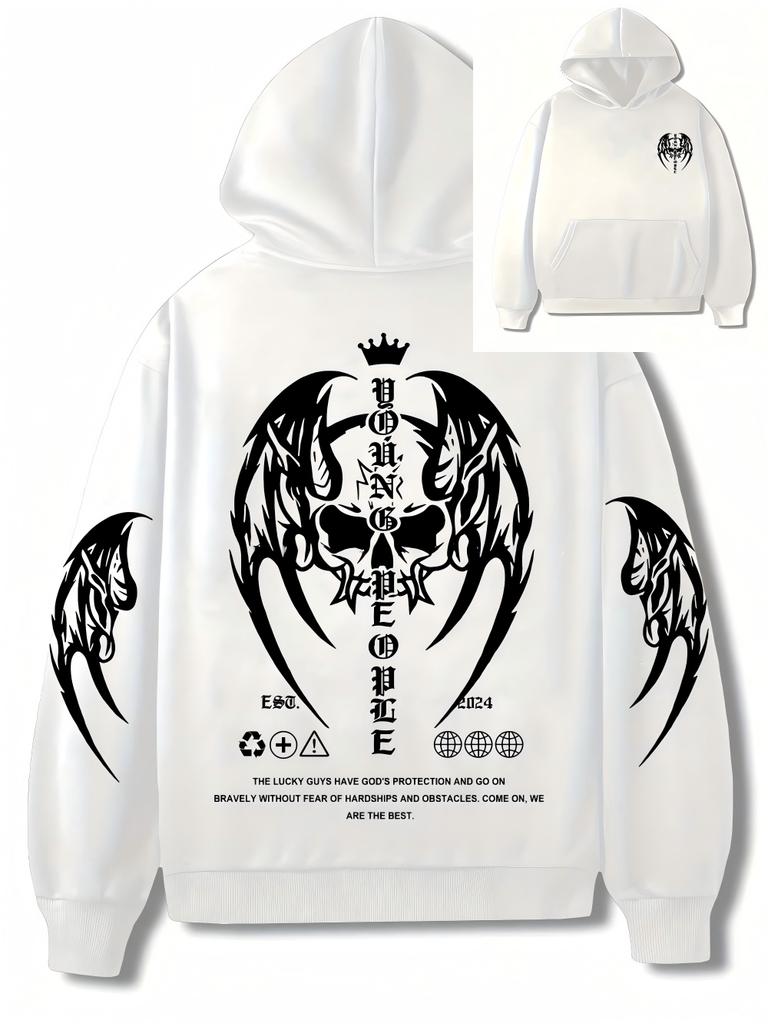 New European and American autumn men's Gothic skull letter print micro elastic comfortable hooded sweatshirt outdoor street top