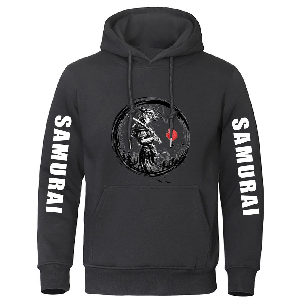 Japanese Samurai Graphic 2025 Spring And Autumn Man's High Street Fashion Pullover Hoodies Solid Color Slim Coat — купить товар онлайн с бесплатной доставкой по всему миру!