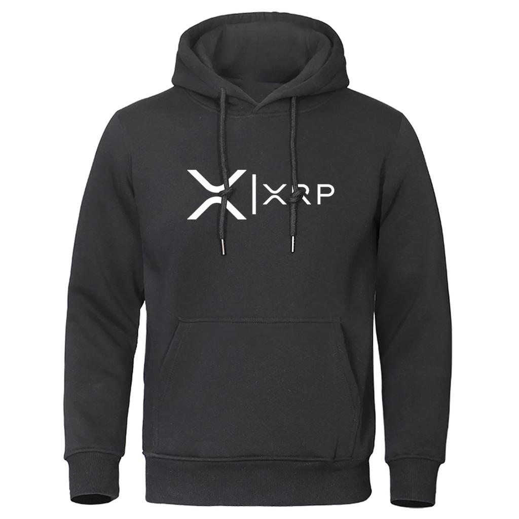 2025 Криптовалюта Ripple XRP Мужской Весна Осень Принт Однотонный Пуловер Худи Мода Длинный Рукав Удобный Повседневный Топ
