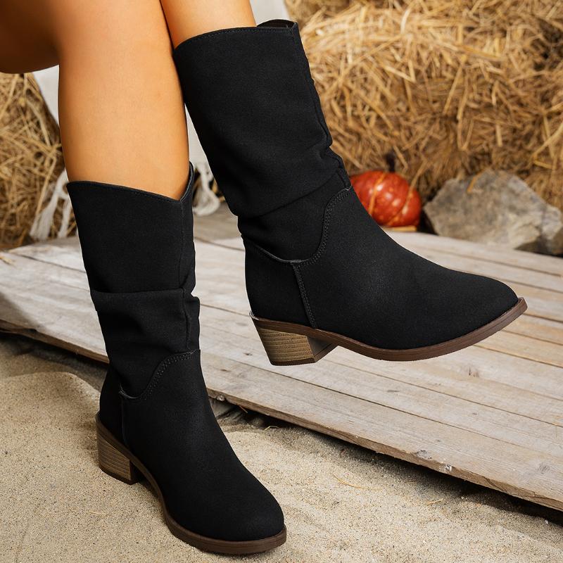 Модные весенне-осенние женские полусапоги Женские удобные ковбойские полусапоги Элегантные ботинки с низким каблуком и острым носком для женщин