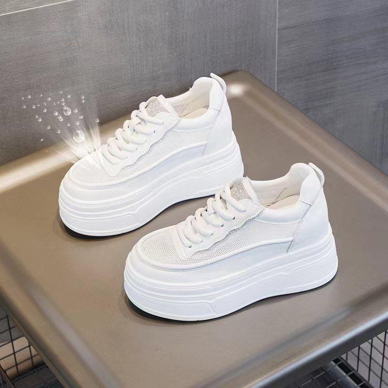 Осенние новые маффины на толстой подошве с внутренней танкеткой, увеличивающей рост, женские модные сетчатые повседневные спортивные туфли, дышащие