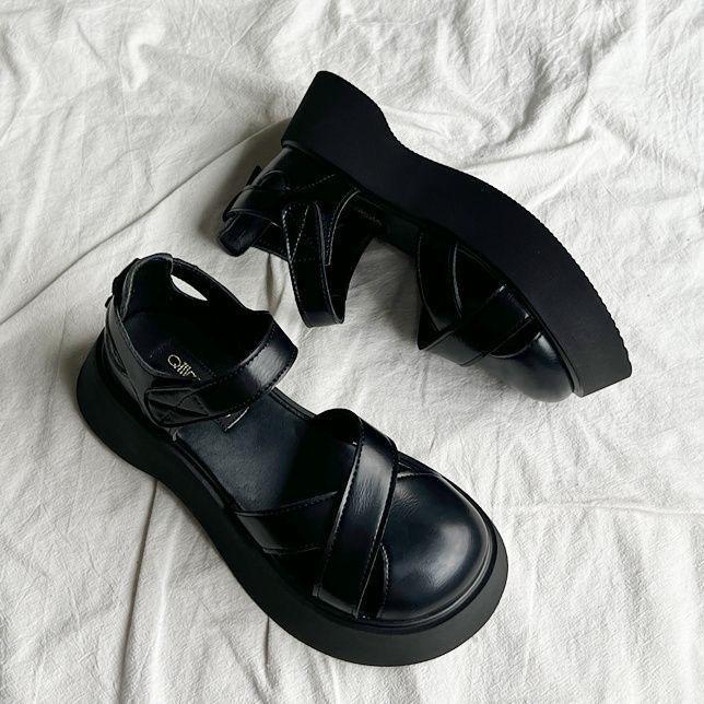 Толстоподошвенные сандалии-гладиаторы с закрытым носком, женские осенние новые толстоподошвенные полые мягкие подошвы, нескользящие удобные туфли-клетка из свиной кожи
