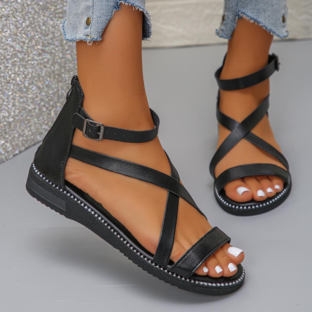 Модная летняя обувь для женщин 2025 Новые женские сандалии на плоской подошве Римские сандалии с ремешками с нескользящей резиновой подошвой Женские повседневные сандалии