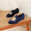 Ретро французская изысканная вышивка повседневные бархатные лоферы на мягкой подошве бини одинарная обувь женская